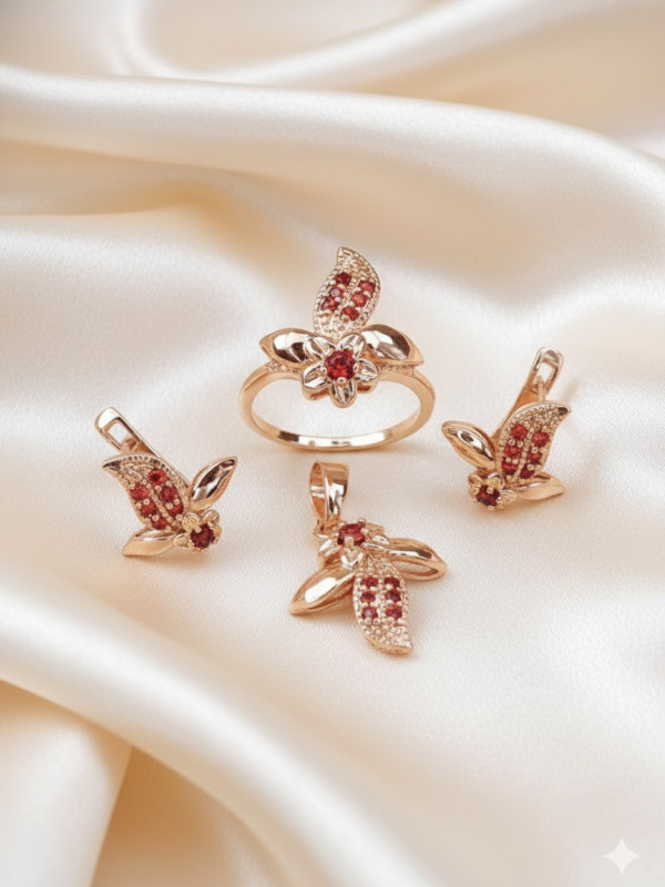 Тип комплекта: серьги + кольцо + кулон