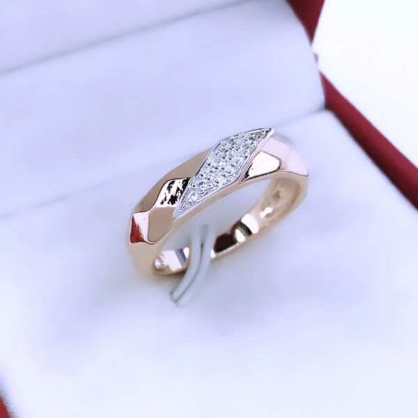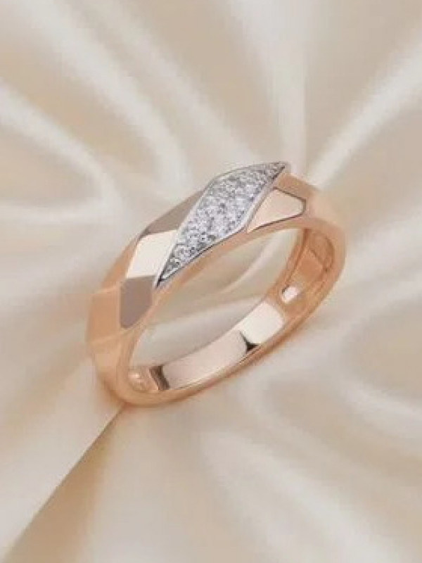 Кольцо с множеством уголков, вместо классической гладкой поверхности, создаёт дополнительную игру света. Оригинальная вставка, с россыпью крошечных переливающихся камней, гармонично подчёркивает его блеск. Яркое и одновременно лаконичное, такое кольцо комфортно в ежедневной носке и подойдёт для любого вашего образа.